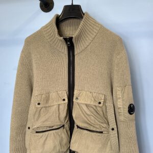 Large C.P. Company Sage Green Lambs Wool Utility Zip Jumper with Chrome Detail