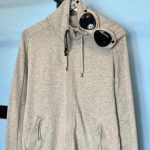 Large C.P. Company White Teddy Fleece / Green Nylon Reversible Goggle Jacket