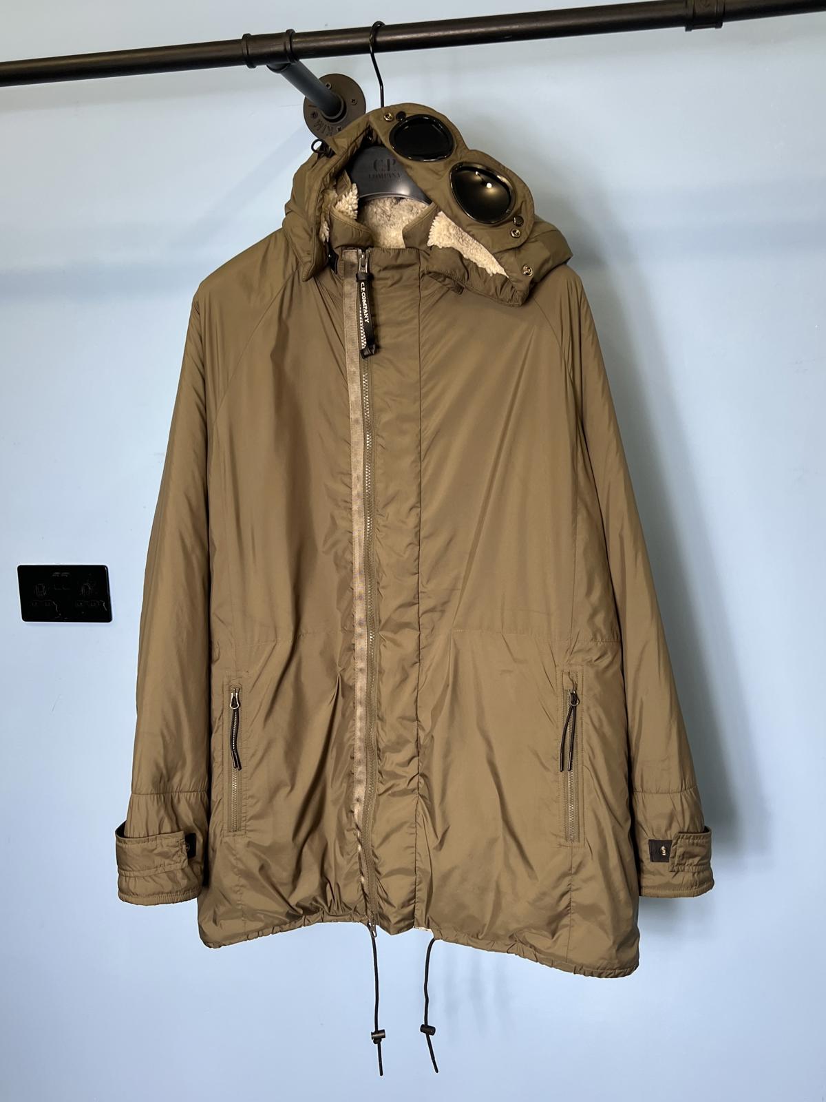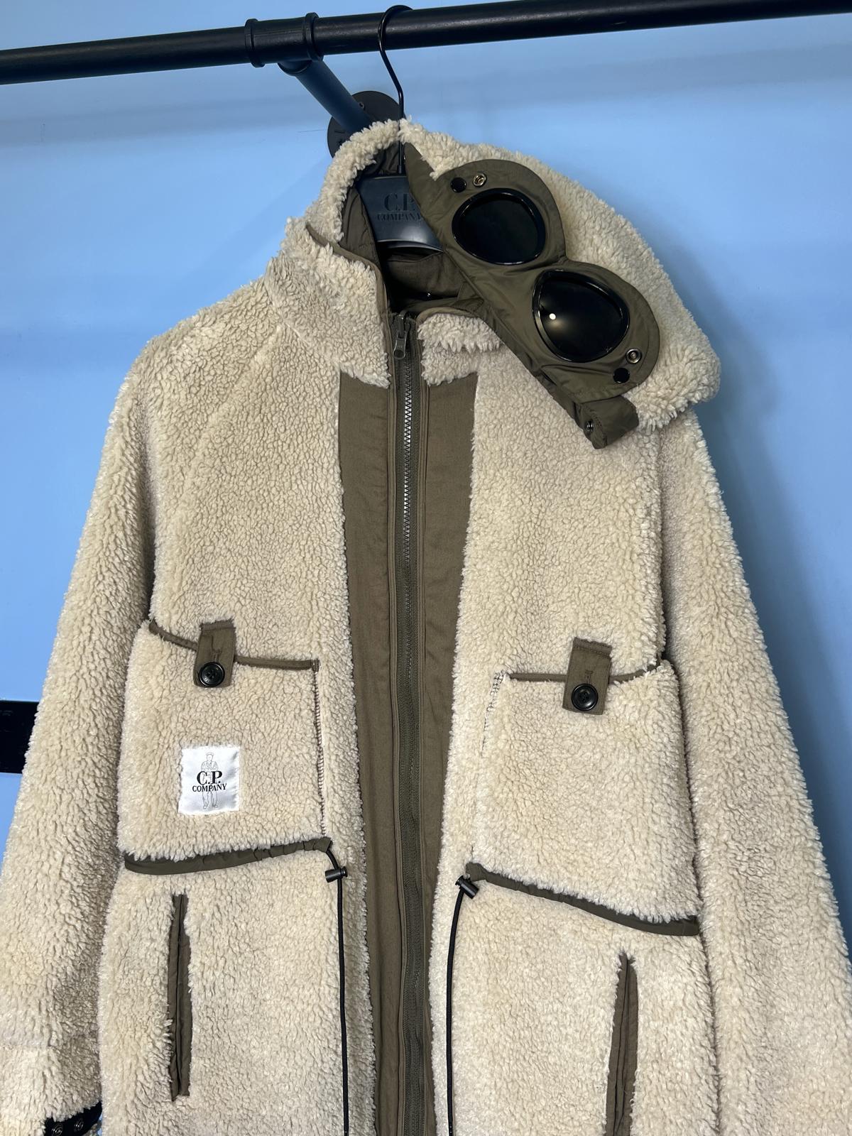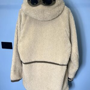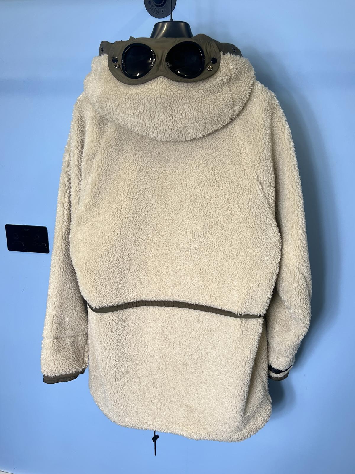 Large C.P. Company White Teddy Fleece / Green Nylon Reversible Goggle Jacket