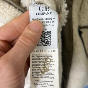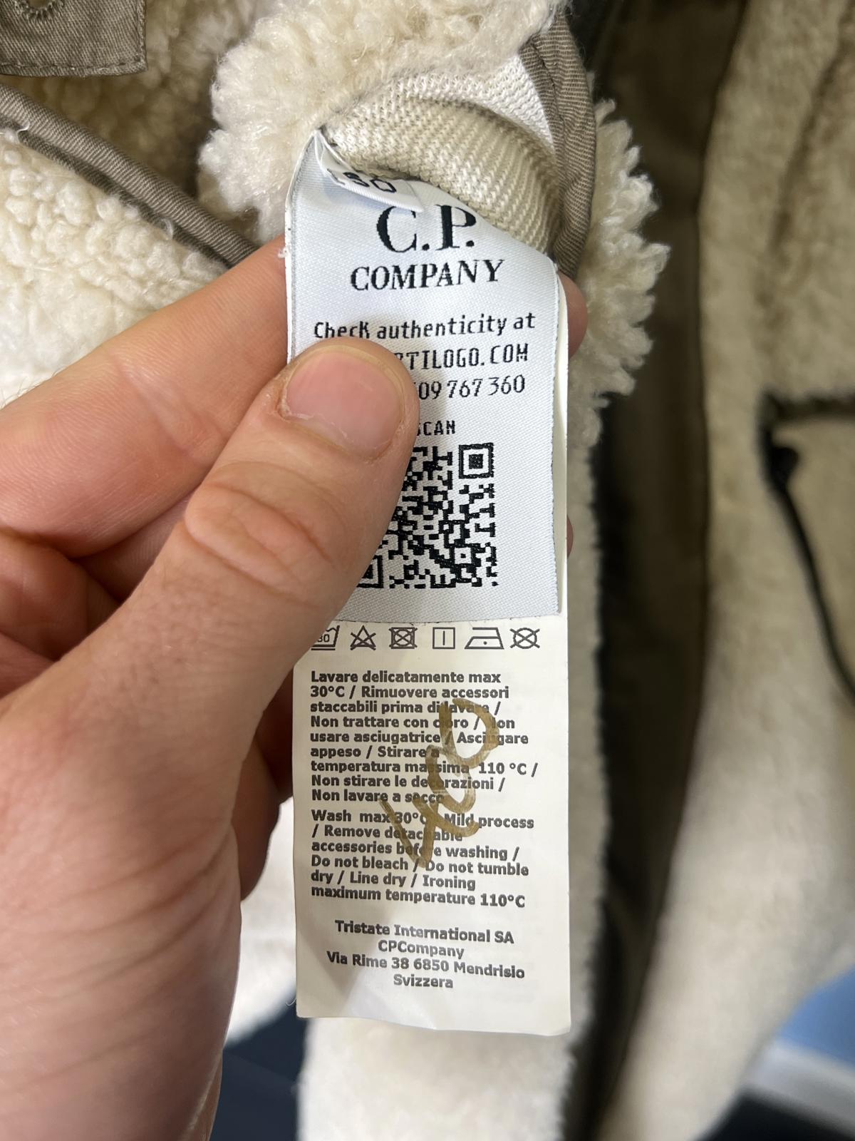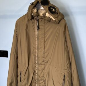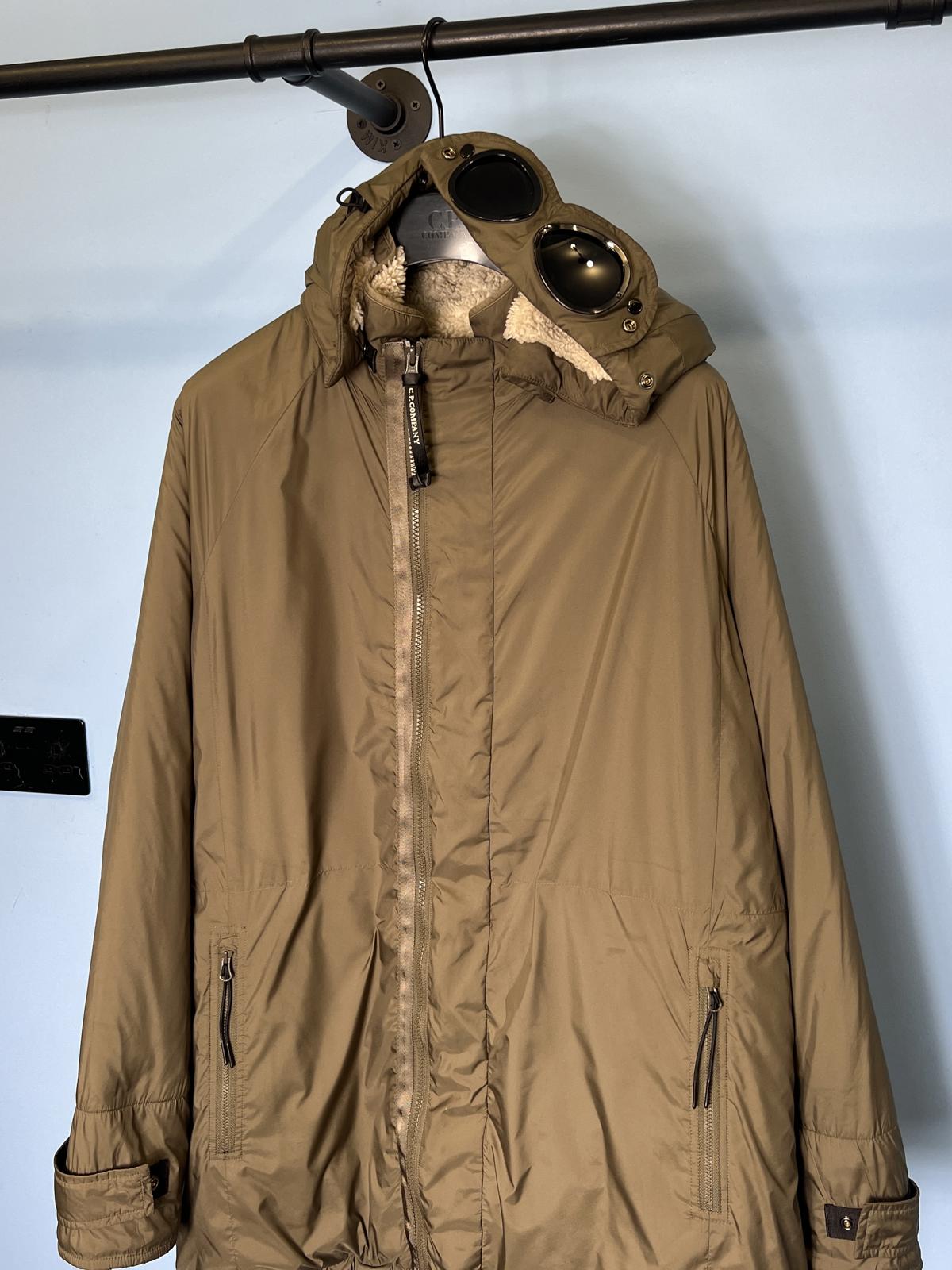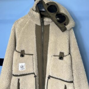 Large C.P. Company White Teddy Fleece / Green Nylon Reversible Goggle Jacket