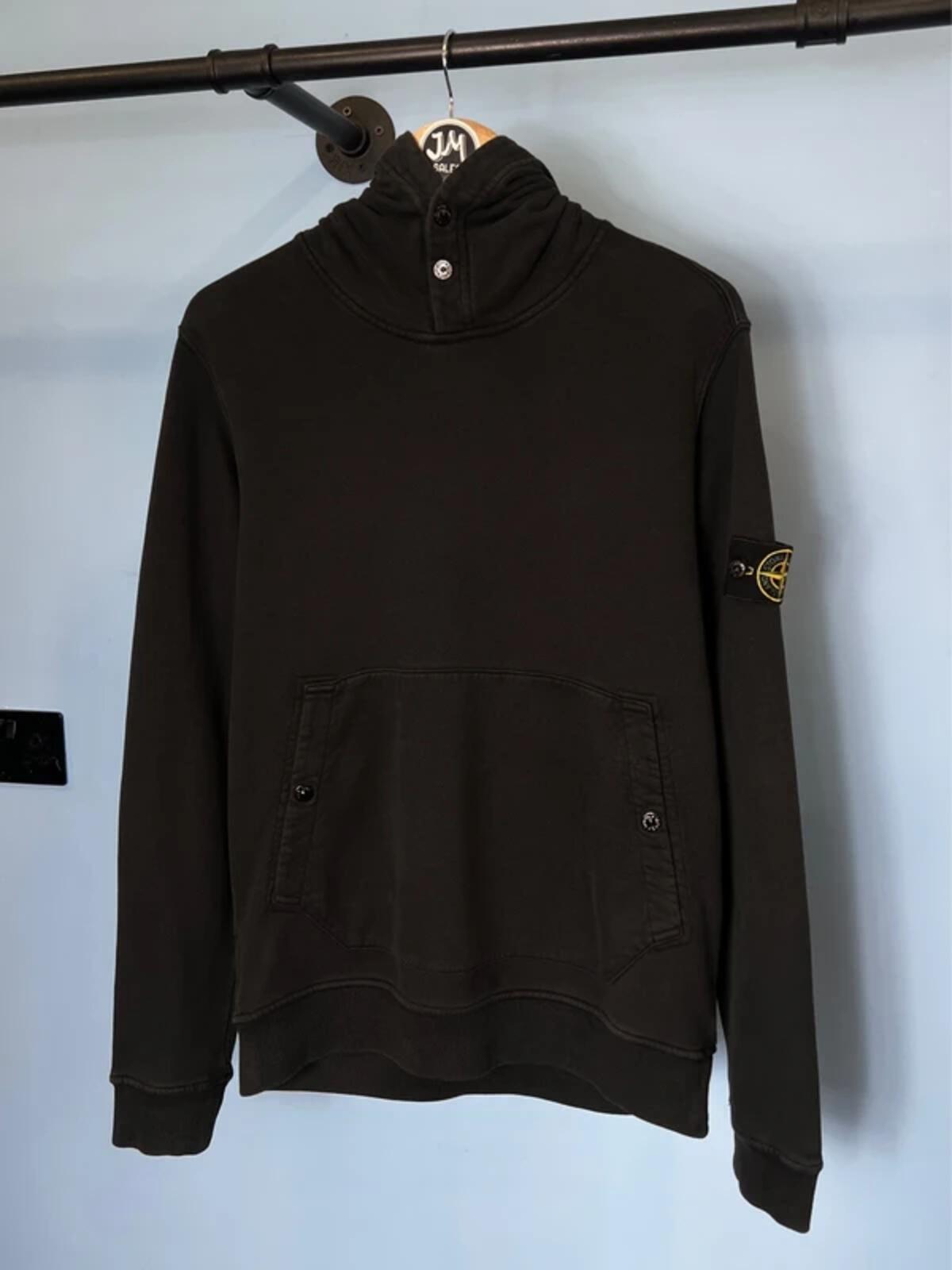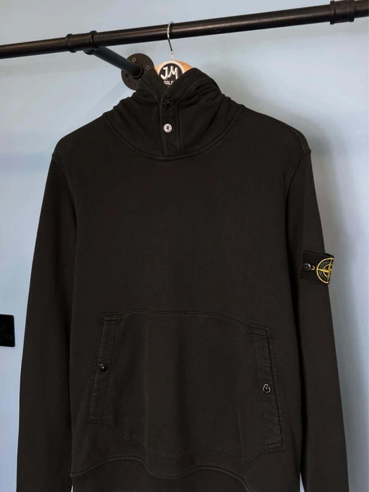Medium Stone Island Black Button Popper Hoodie Jumper
