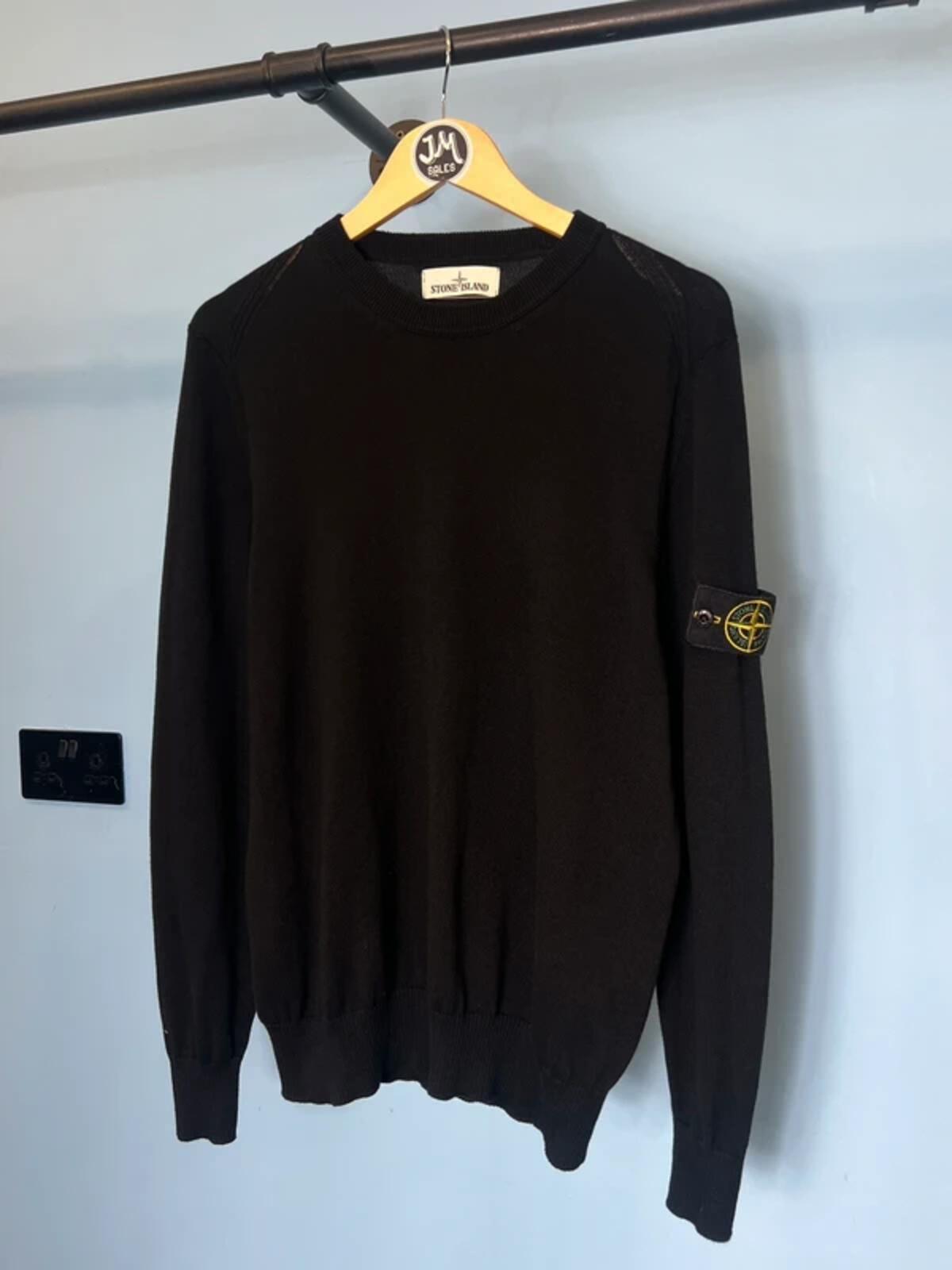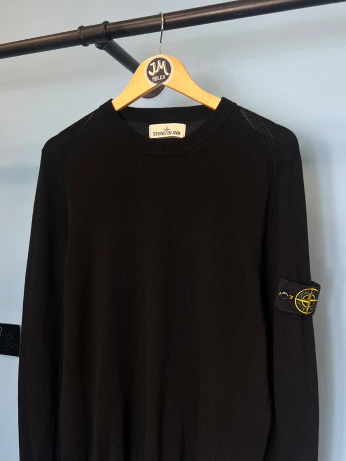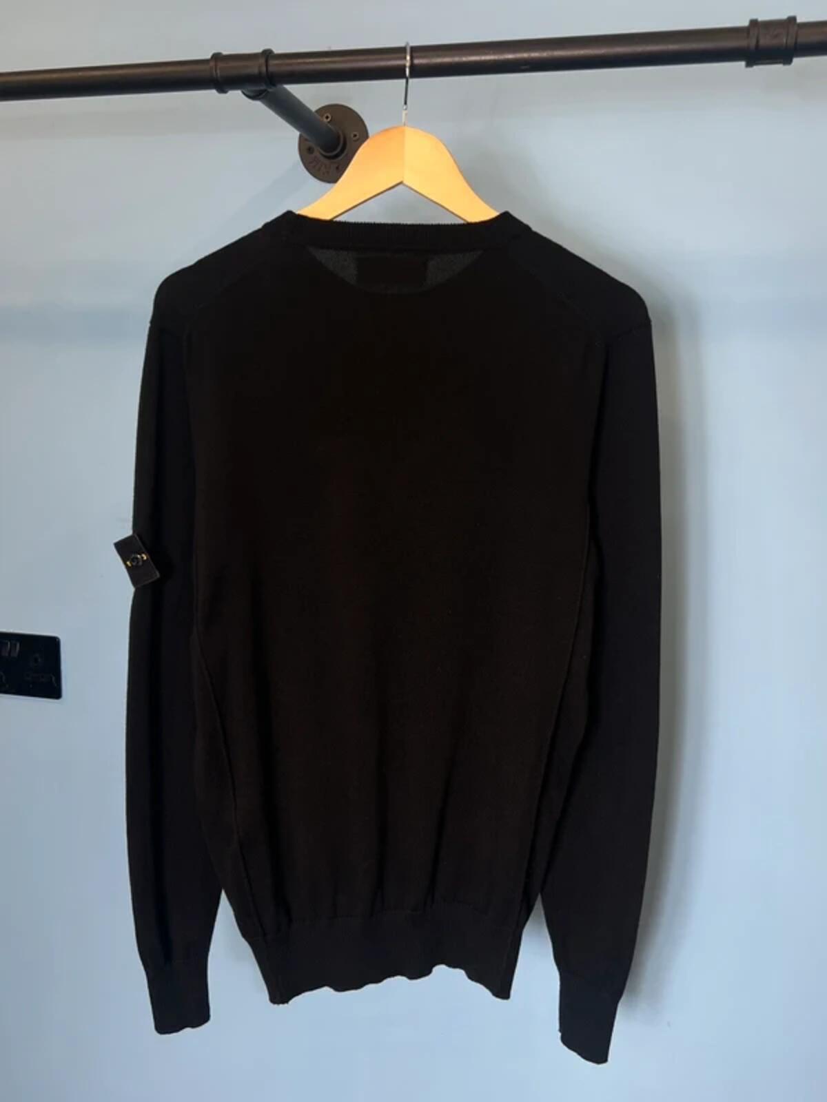 Medium Stone Island Black Lightweight Cotton Knit Sweatshirt Jumper